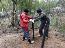 параллельно с этим установив заранее изготовленные памятники и цветники. Затем вернули на место металлическое ограждение и засыпали цветники и площадь перед