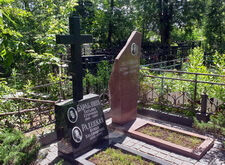 Вертикальный памятник из красного гранита было решено не трогать, и работы по его восстановлению проводились на установленном надгробье: мы восстановили надпись на памятнике и удалили образовавшийся на камне налёт.