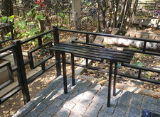 Изготавливаем вазу, наносим изображение. Перед памятником делаем небольшую площадку под траурную урну. Лавочка, установленная на участке, изготовлена полностью