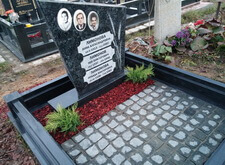 Подход был выбран комплексный. Мы сделали гранитный цоколь, заменили подставку (в будущем на левую свободную часть будет установлена ваза), уложили гранитную брусчатку на пол, оставили зону под будущие посадки цветов, посадили молодой можжевельник, закрыли землю мульчей, чтобы во время дождя земля не поднималась на гранит. И конечно, самое главное – мы сохранили гранитную плиту. Мы снимали ее, полировали лицо на станке и заново наносили надписи и изображение колосьев, обязательное требование заказчика. Мы также заменили фотокерамики на новые и долговечные. Работы была принята клиентом с воодушевлением.