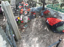 Изначально мы наблюдаем на участке могилу после очередного дозахоронения. На территории её находятся лишь деревянные кресты, снятый с места бетонный цоколь и достаточно простая оградка.