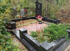 Гранит помыли, цветы в цветнике убрали, закрыли землю корой, могилу почистили от опавшей листвы. Могила снова в полном порядке.