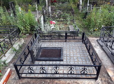 В ходе работы над данным заказом нам предстояло: переустановить покосившийся широкий памятник из чёрного гранита; покрасить обветшавшее от времени ограждение; обновить надписи на надгробье; установить прямоугольный цветник, а также выложить землю на участке гранитной брусчаткой. Приехав на место захоронения мы застали могилу в заброшенном состоянии: на всей её территории росла сорная трава, практически полностью скрывавшая памятник.