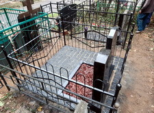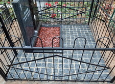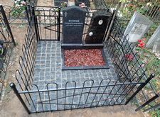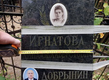 По приезду на кладбище мы осмотрели место захоронения и промерили необходимые для изготовления парного памятника параметры находящегося на могиле надгробья.