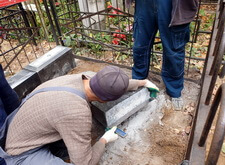 Далее мы перешли к памятникам: переустановили основание покосившегося надгробья, а также привезли и установили новый постамент для памятника, который будет установлен рядом.